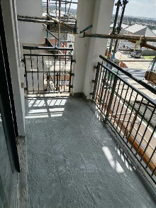 Balcony Tiles will be stripped on balcony .If needed screed will be thrown and sloped correctly .A Thermoflex primer will then be applied .4mm Torch on system to be applied. Elastorcrete to be applied after waterproofing for tiling. Contact Us